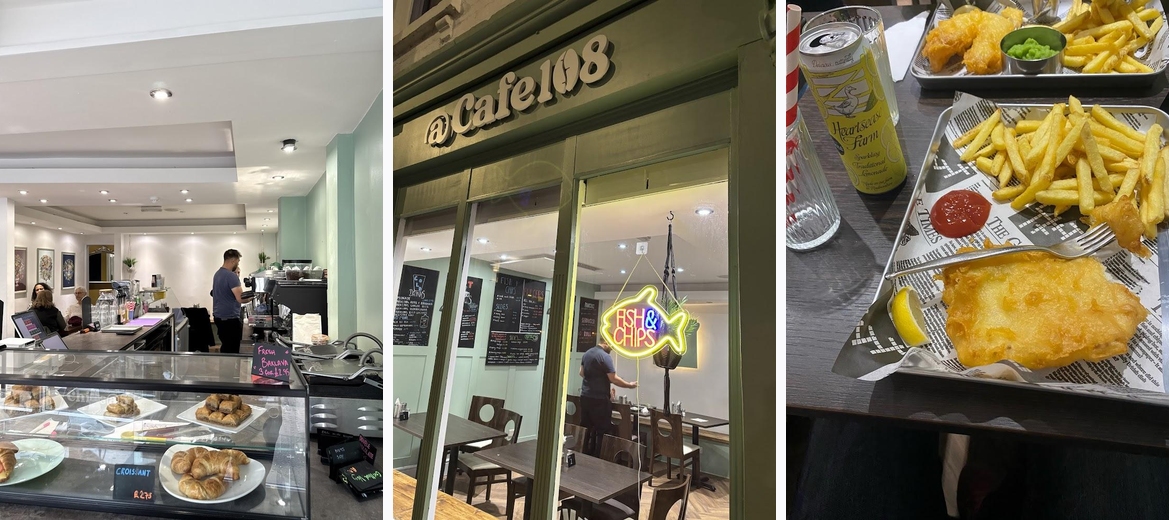 Discover @Cafe 108 in Oxford for the perfect blend of specialty coffee, freshly baked pastries, and delicious fish 'n' chips. Enjoy homemade sandwiches and vibrant vibes in our newly renovated space. Dine-in, takeaway, or opt for delivery. Visit us at 108 Walton St for an unforgettable foodie experience!